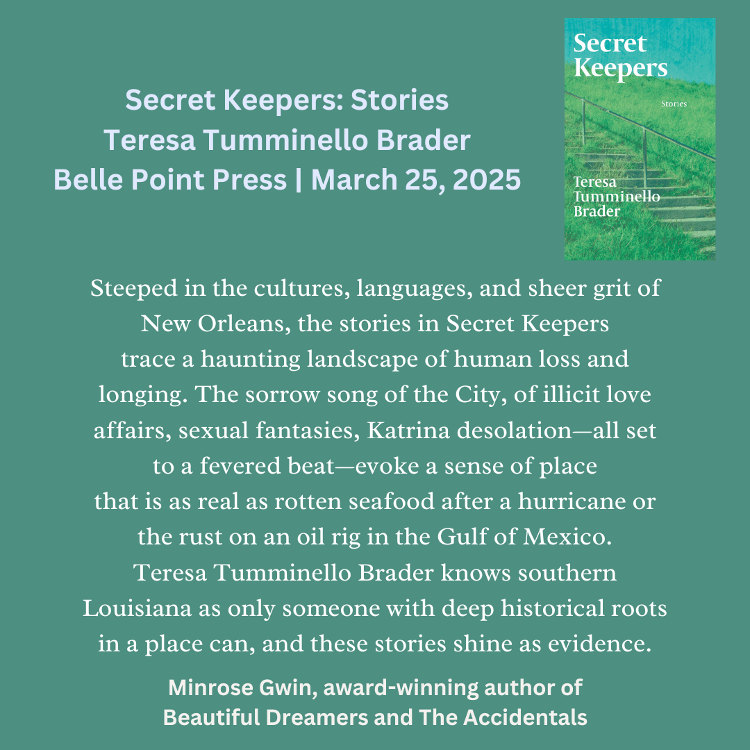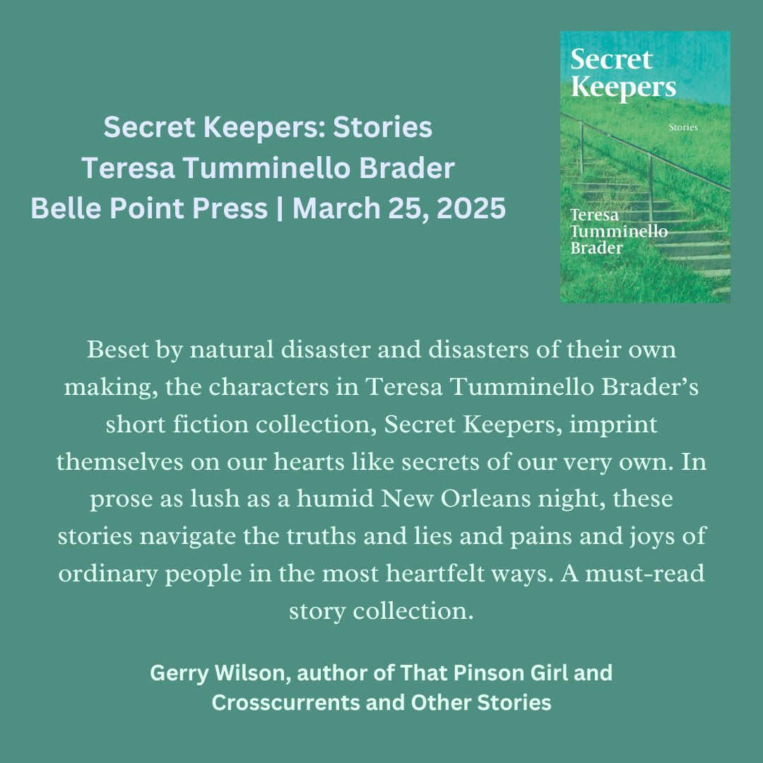 Secret Keepers, my second book (both with Belle Point Press) and my first short-story collection, will be released on March 25, 2025. (ISBN: 978-1-960215-34-5) It can be preordered here: https://bellepointpress.com/products/secret-keepers. Thank you to all who do so.
